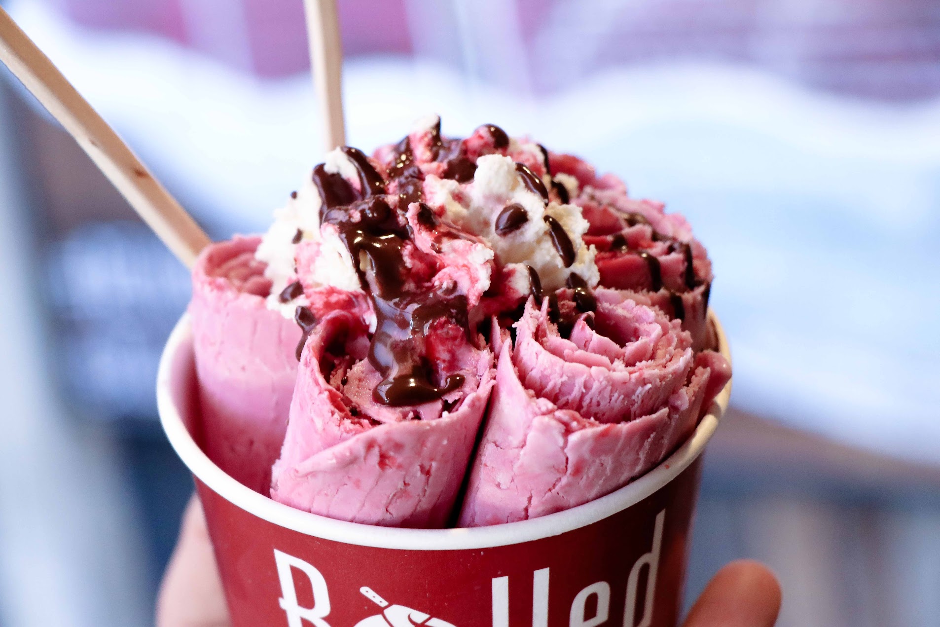 At Rolled Mountain Creamery, we take pride in using all-natural ingredients and working with local partners who share our commitment to excellence. Our ice cream rolls can be finished with a variety of toppings, from crunchy textures to fruity sweetness, allowing guests to build a treat that reflects their own taste. More than just dessert, it's an experience that brings people together, fun to watch, satisfying to eat, and made with genuine care.